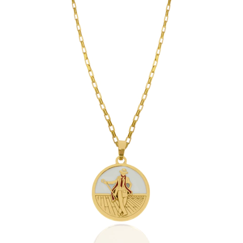 -Material da Corrente: Aço Inox com banho dourado.