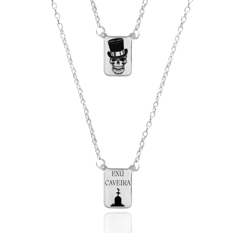 Este Escapulário de Aço Inoxidável é dedicado a entidade Exú Caveira, frequentemente representado com a aparência de caveira, simbolizando a impermanência da vida e a transição entre os mundos. Sua cor é o preto e as vezes o branco, que representam o mistério e o desconhecido. Ele é conhecido por sua complexidade e variedade de características. Exú Caveira é visto como uma figura poderosa e procurada por suas habilidades para resolver problemas espirituais.